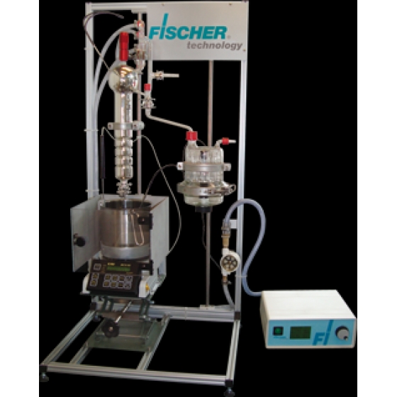 附以玻璃製造的手動蒸餾液分支控制伐以及球形地面接頭作為分餾收集器或蒸餾液接收器的備選連接的FISCHER® micro SPALTROHR®-column MMS 255。