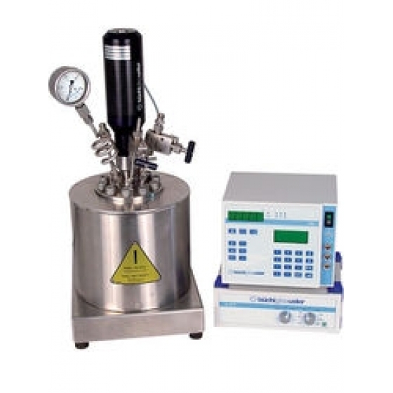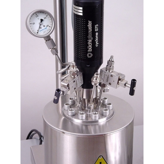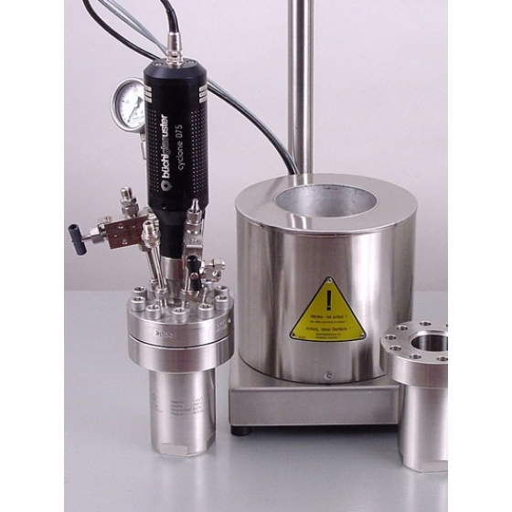 This high pressure reactor system is designed for the use of interchangeable steel pressure vessels. Safety features guarantee safe reactions under pressure.