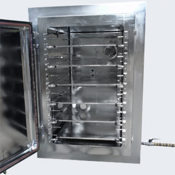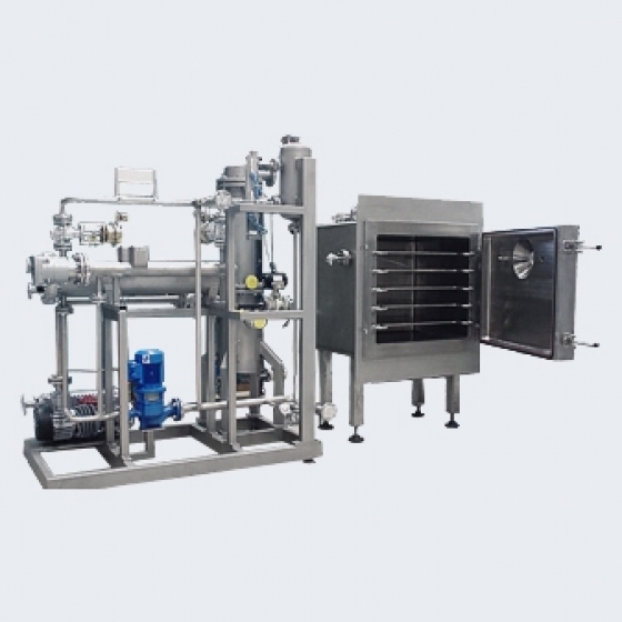The dryer is generally pre-heated prior to loading the filled trays. Once all trays reach the same temperature, vacuum is applied and the drying process started, typically in the range of 40 to 80 mbar and temperature of 80 - 130 ゚C. In the final drying phase, typically a high vacuum is reached.