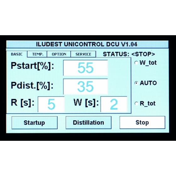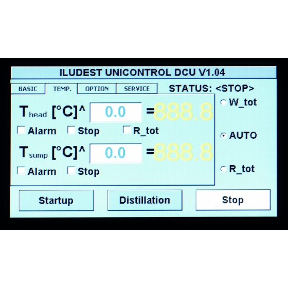 reflux-/withdrawal time adjustable: 0:999...999:0, total reflux, total withdrawal temperature range: