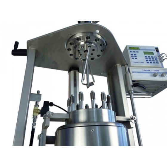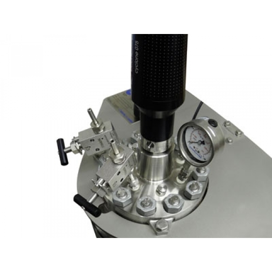This high pressure reactor system is designed for the use of interchangeable steel pressure vessels. Safety features guarantee safe reactions under pressure.