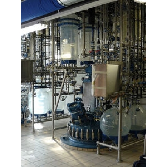 Chemical process equipment consisting of glass lined reactors or mixing tanks with distillation overhead in borosilicate glass can be operated at full vacuum and low pressure. A large variety of chemicals can be processed in such plants due to the highly corrosion resistant materials used. The design varies between multipurpose to product and process specific applications. Feeders and receivers are made in glass for smaller units and in glass lined steel for larger setups. Shell and tube type heat exchangers are built with inner tubes made of borosilicate glass, glass lined steel, silicon carbide, tantalum or in other metals depending on process parameters and other requirements . Such reactor configurations are used for distillation, reflux distillation, chemical synthesis, solvent recovery, rectification and other processes.