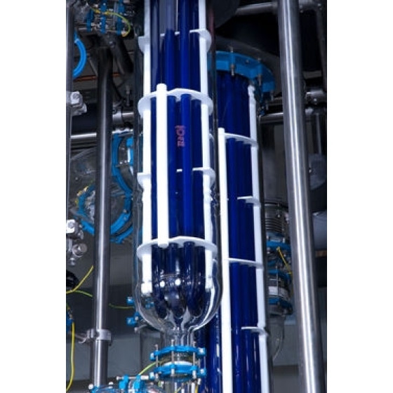 玻璃螺旋換熱器可以通過並聯來增大熱交換以提高冷凝性能和和用於實驗工廠中較大的反應釜系統。它們的特點是容易清洗和操作,冷卻媒介壓力不得超過 3 bar。
